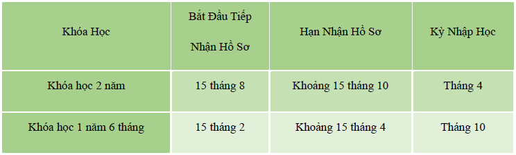 - Đã tốt nghiệp hoặc dự kiến tốt nghiệp chương trình giáo dục trung học phổ thông trở lên. Về đánh giá khả năng học tập, điểm thi tốt nghiệp phải đạt trên 70%.