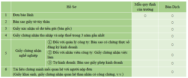 Nếu người hỗ trợ tài chính của học viện hiện đang sinh sống ở Nhật Bản, vui lòng tham khảo ý kiến của ban tuyển sinh của nhà trường.