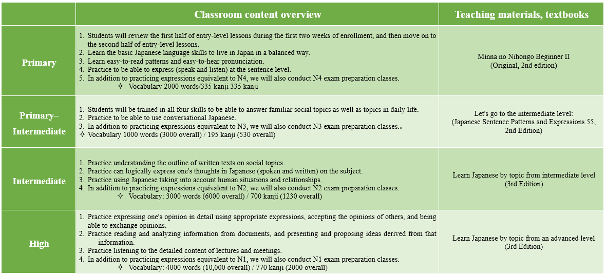 Our school classes are divided into small groups of less than 20 students per class to maintain the best study environment and provide easy-to-understand lessons with courtesy.