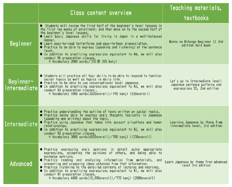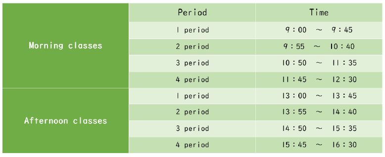Osaka Taiyo Language Academy maintains small class sizes with no more than 20 students per class.We provide clear and thorough instruction in a calm learning environment.