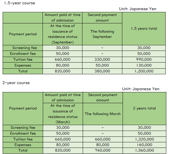 1. In principle, the tuition fees already paid are non-refundable. However, students may request a refund in the following cases: If student has a desire to quit and refuses to enroll in the school before entering Japan and enrollment date, school fees will be refunded except for the entrance fee and screening fee. If student wants to quit after entering Japan, school fees will not be refunded in any case. 2. In case student’s visa is not approved, the screening fee will not be refunded. 3. Payment must be made by bank transfer. School will not accept payment in cash.