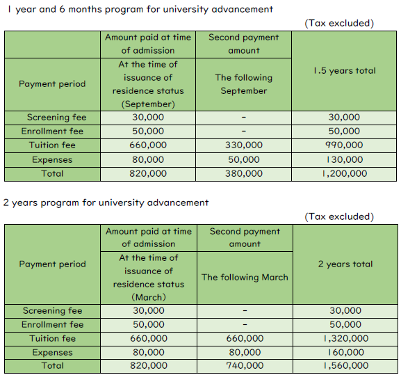 Payments and other fees will be separately notified by the university. Please remit payment by the specified deadline.