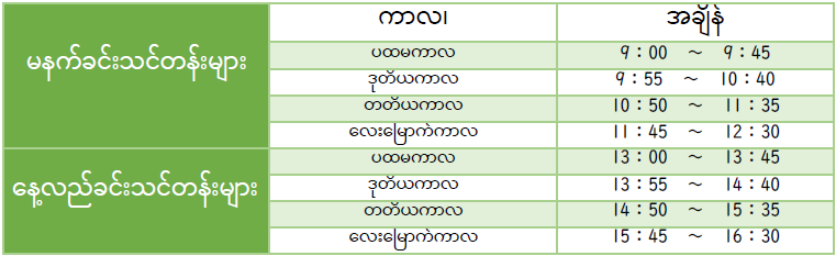 ★အချိန်ဇယား
