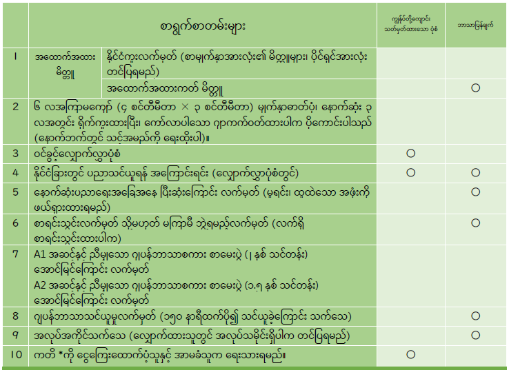 ၂) ဂျပန်စာနှင့် အင်္ဂလိပ်စာအတွက် အောက်ပါ အခြေအနေများကို ဖြည့်ဆည်းရမည်။
