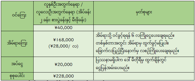 ※ အသုံးစရိတ်များကို တစ်ဦးချင်းစီ တာဝန်ယူရမည်။
